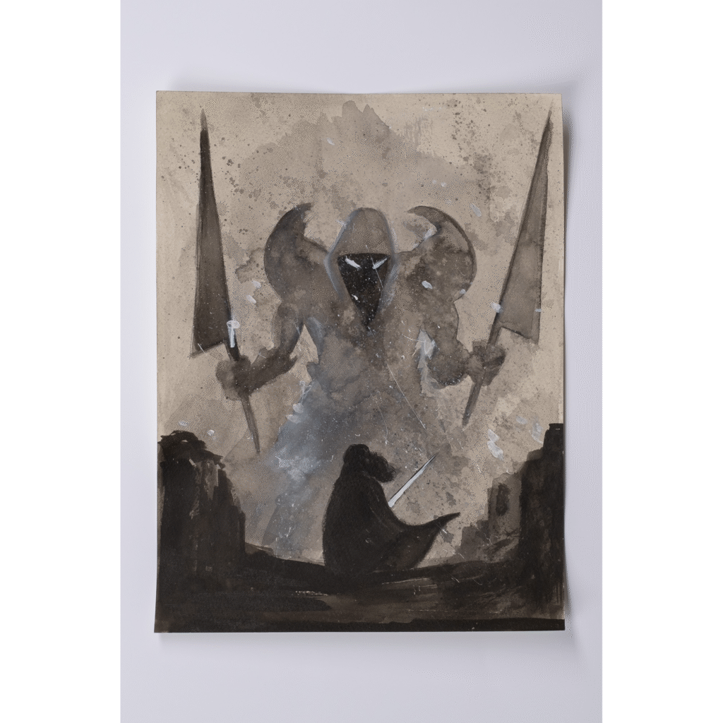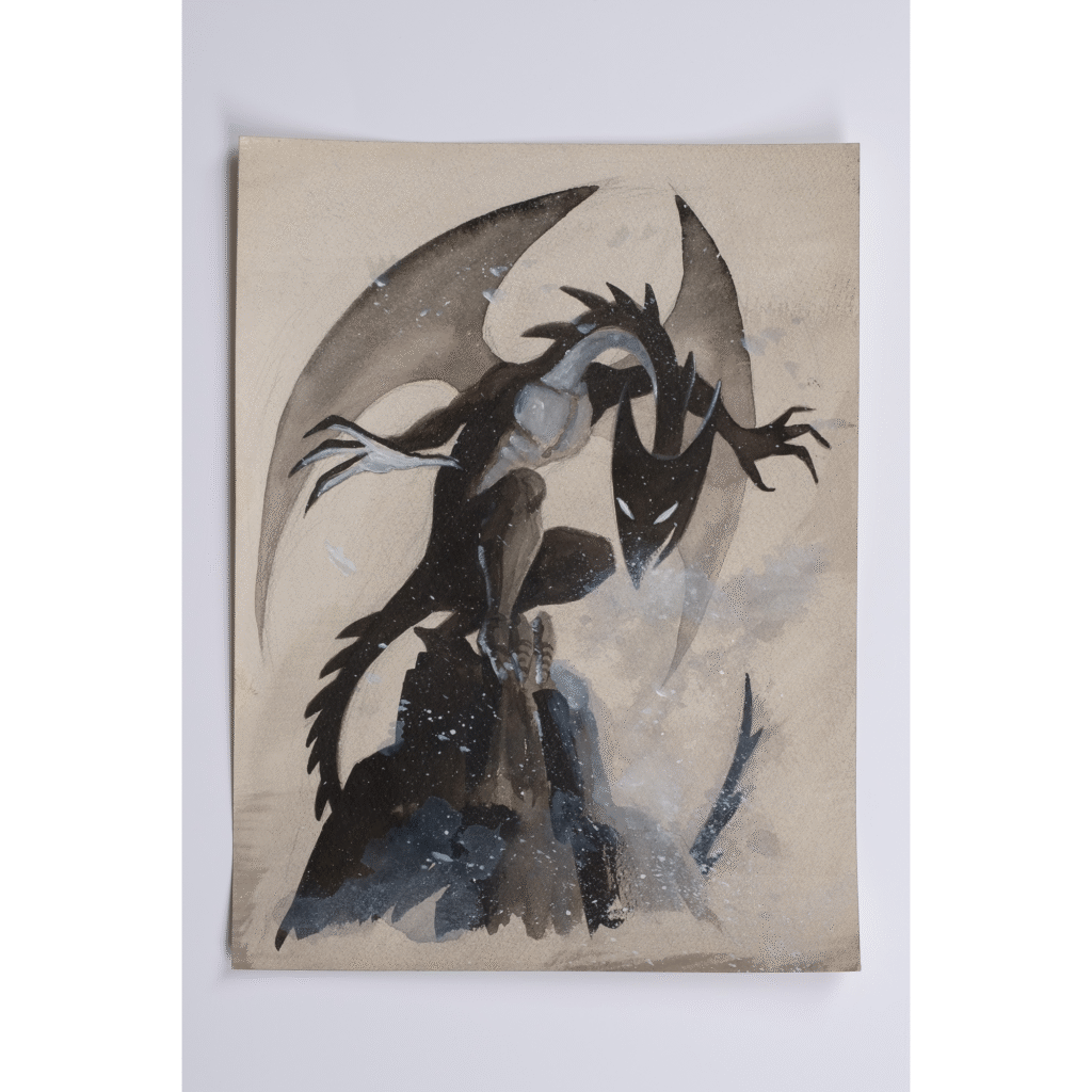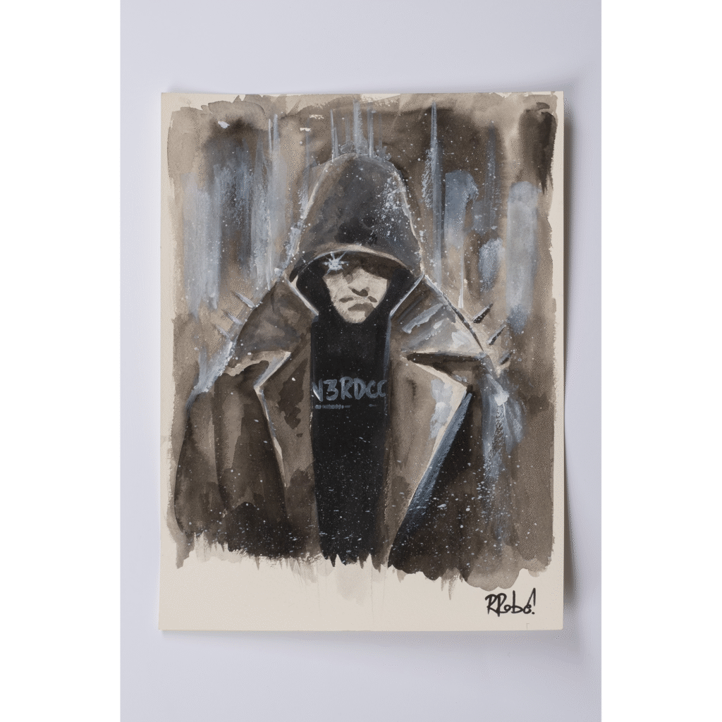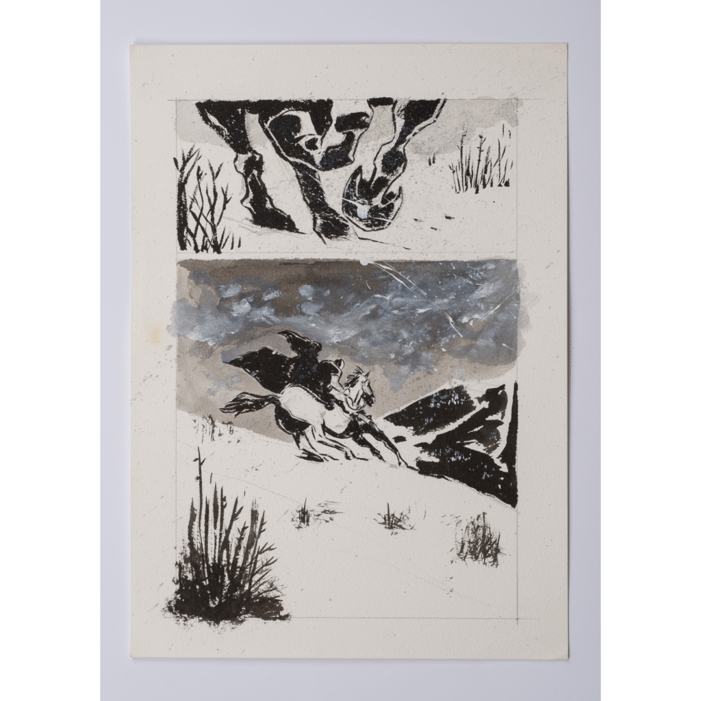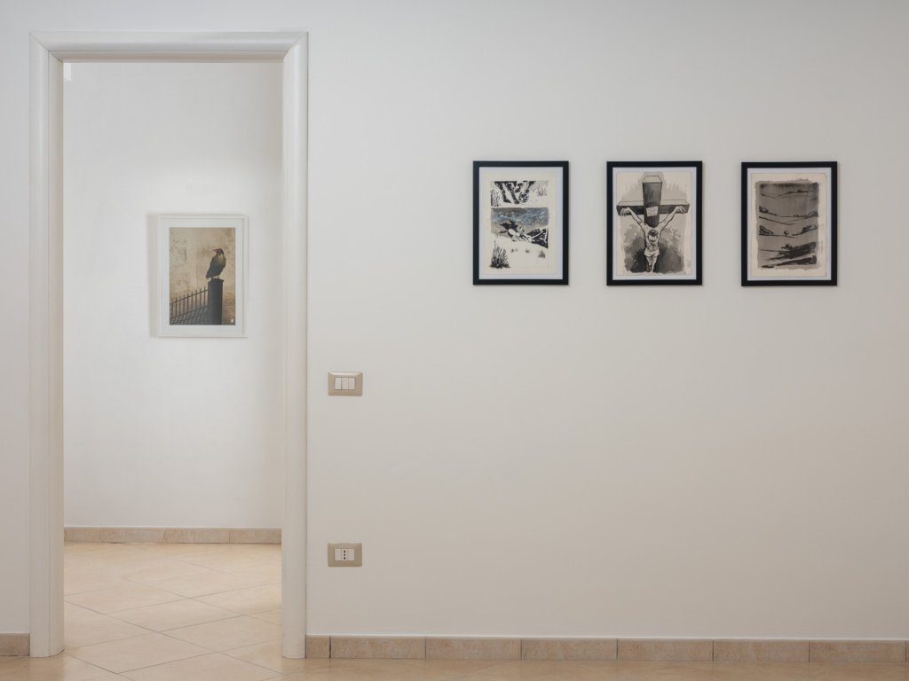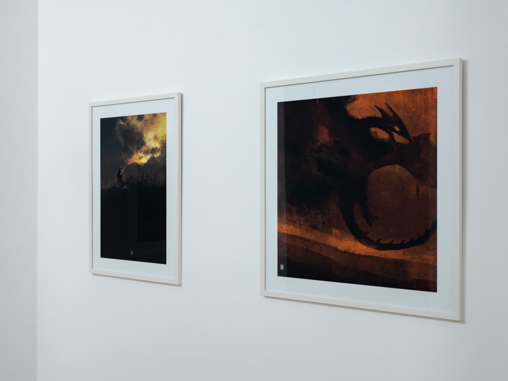 Alcune delle tavole presenti in mostra sembrano quasi invitare alla meditazione, cullando l’attenzione dell’osservatore fino ad annullarne il carico cognitivo; altre, tratte dal suo lavoro di romanziere – che lo ha visto pubblicare una saga fantasy per i tipi di Mondadori – nonché dalla sua indiscutibile carriera nel campo del fumetto professionale – dove ha collaborato con le più importanti case editrici operanti in Italia, come Bonelli, Panini Comics e Disney – sono come una sbirciata in un’altra dimensione di cui vorremmo assolutamente conoscere di più; altri ancora hanno un sapore epico, tanto per l’ispirazione – manifestatamente letteraria – tanto per il modo in cui si fondono colori e rappresentazione.