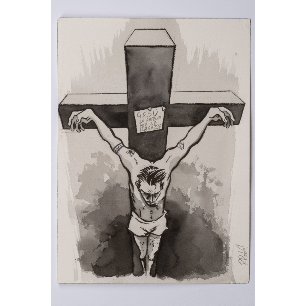 In questa mostra dal titolo volutamente ironico, Roberto Recchioni dà fondo alla sua capacità immaginativa, spaziando da un figurativo dall’atmosfera vagamente gotica – genere che ha contrassegnato la sua ricerca personale a più riprese in questi anni, sia per quanto riguarda l’arte sequenziale, sia per quanto riguarda la più recente esperienza cinematografica di Carne Fredda, progetto episodico prodotto da Adler Entertainment e Red On Productions e presentato in anteprima lo scorso ottobre al Lucca Comics & Games – a tavole in cui si respira lo stile espressionista e inconfondibile di Mark Rothko, in cui la “rockstar del fumetto italiano” esplora un mondo sconosciuto cui anche il pittore statunitense sembra spesso alludere, riportandolo alla grammatica propria dell’arte sequenziale.